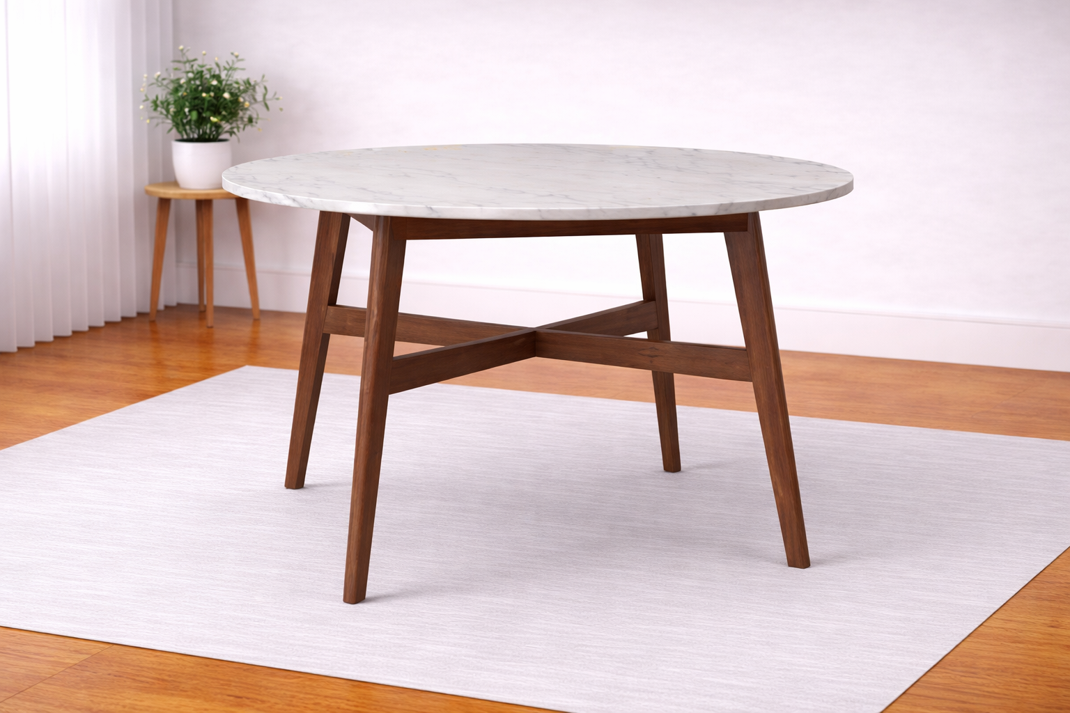 The 4 Seater Round Marble Top with Wooden Base Dining Table is an elegant blend of natural luxury and warm craftsmanship. Featuring a smooth marble tabletop paired with a solid wooden base, this dining table creates a refined yet inviting dining atmosphere. The round design promotes comfortable seating and easy conversation, making it ideal for compact and stylish dining spaces.