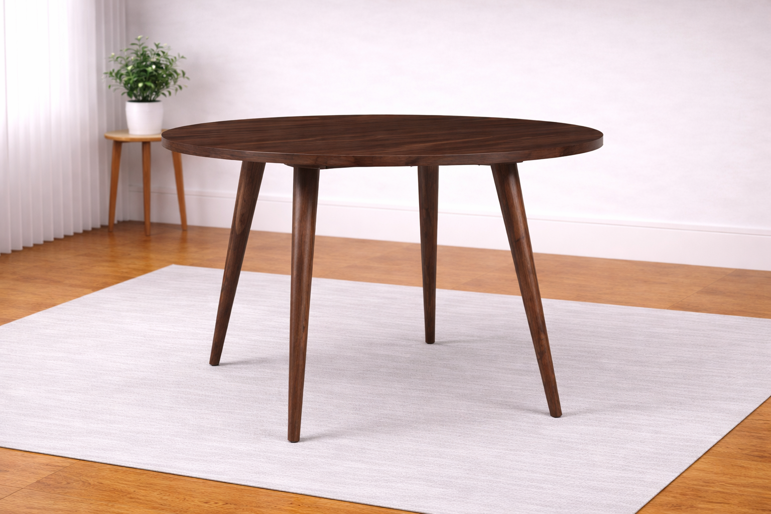 The 4 Seater Round Wooden Dining Table is a timeless dining piece designed to create a warm and inviting dining experience. Crafted from high-quality solid wood, its round tabletop encourages comfortable seating and easy interaction, making it ideal for intimate dining spaces. The smooth finish and balanced proportions highlight skilled craftsmanship and natural wood beauty.