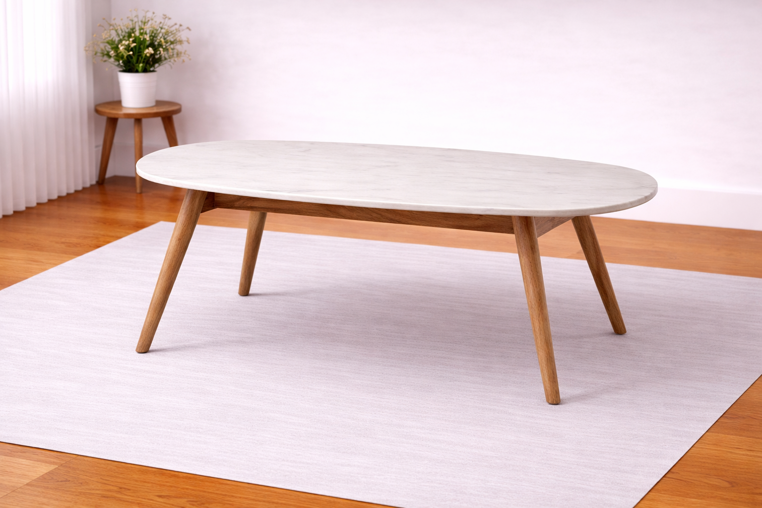 The Marble Top with Wooden Base Centre Table blends natural elegance with timeless craftsmanship. Featuring a premium natural marble tabletop supported by a solid wooden base, this centre table brings warmth, sophistication, and durability to modern and classic interiors alike. The contrast between smooth marble and rich wood grain creates a refined focal point for living spaces.