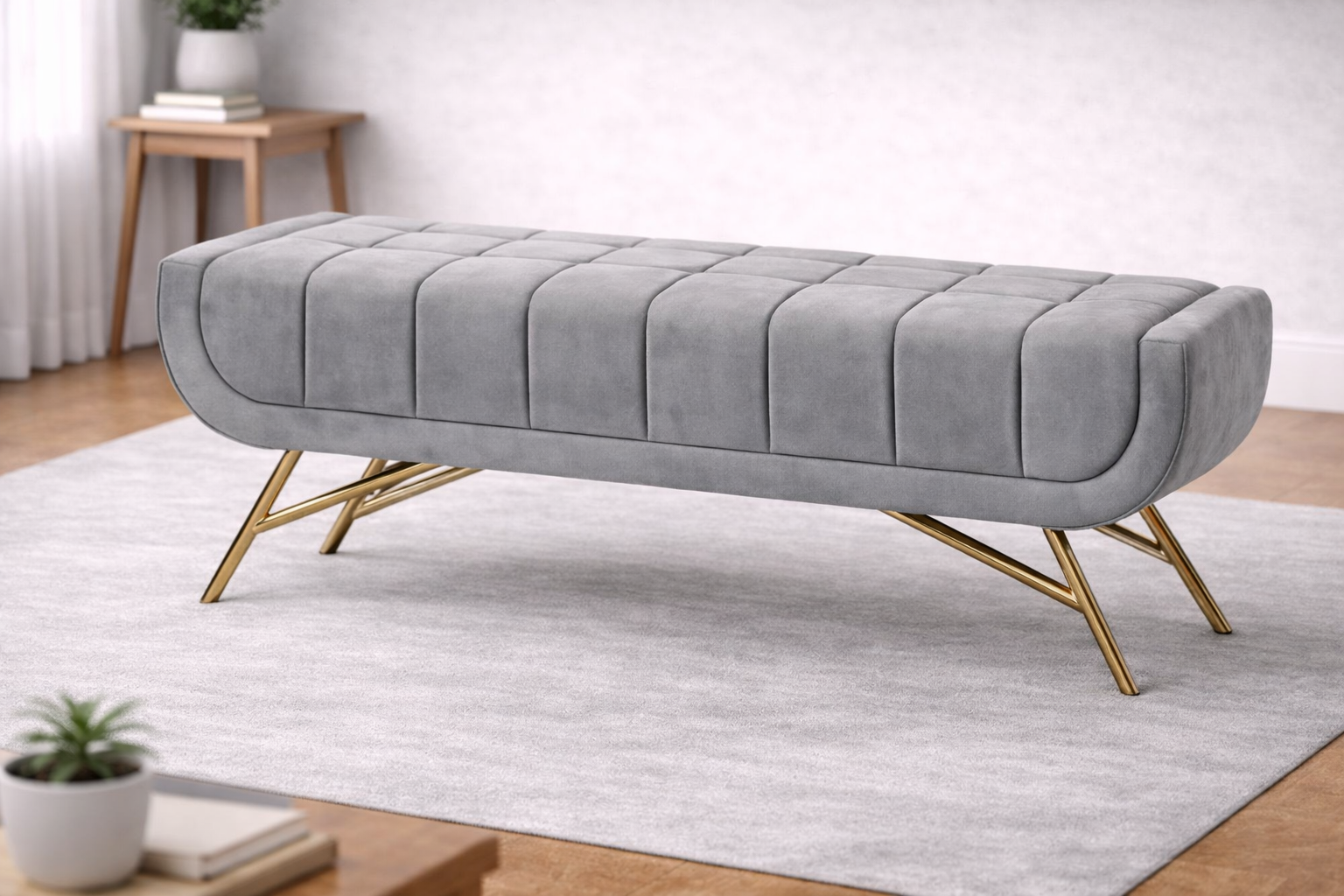 The Upholstered Ottoman with Metal Legs is a modern accent piece designed to add style, comfort, and functionality to contemporary interiors. Featuring a softly upholstered top supported by sleek metal legs, this ottoman offers a refined look with a lightweight yet sturdy structure.
